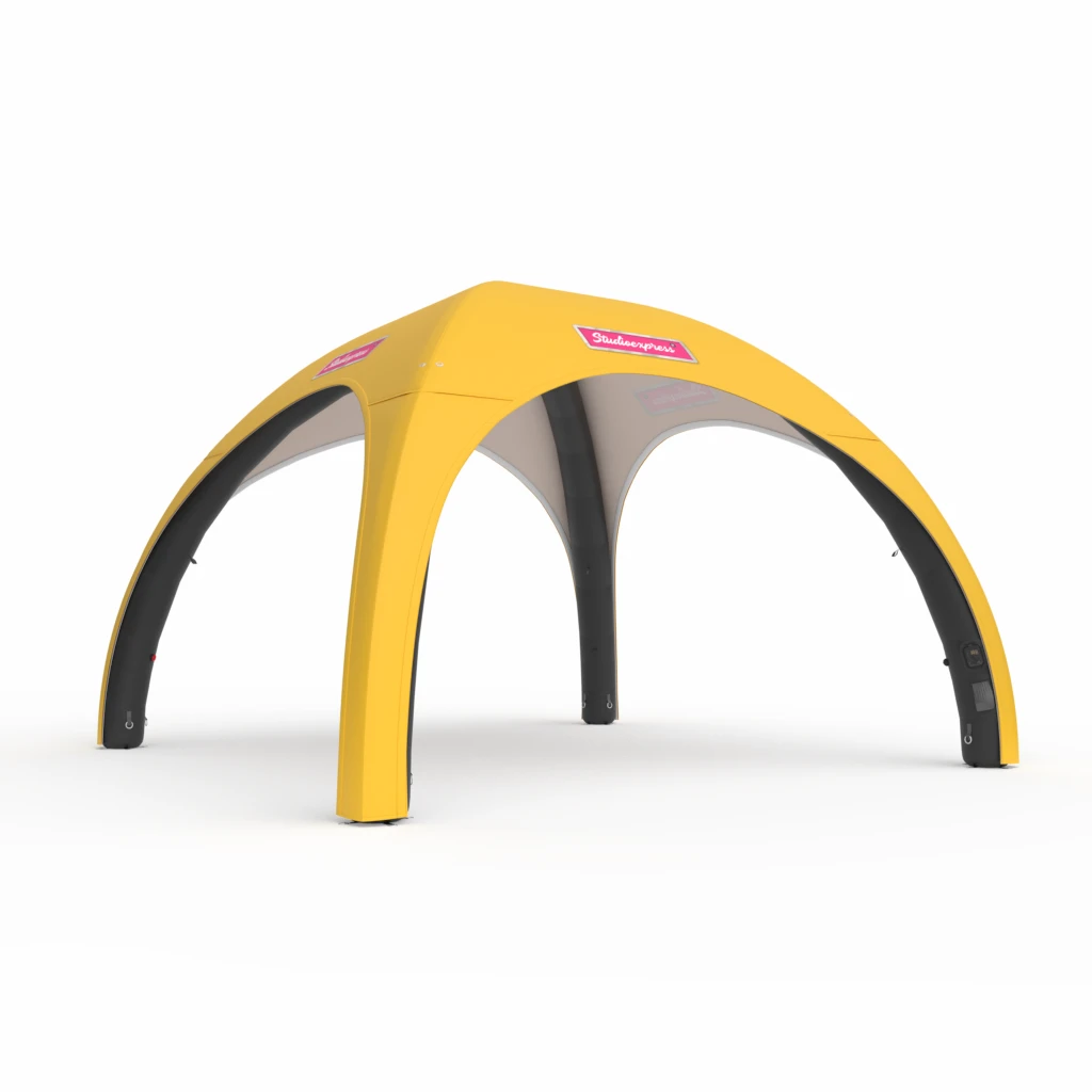 Konstrukcja cały czas utrzymuje stałe ciśnienie. Namiot nie wymaga podłączenia do sprężarki powietrznej ani stałego zasilania. Rozstawienie namiotu zajmuje dosłownie kilka chwil, co pozwala Ci skupić się na innych aspektach organizacji imprezy.