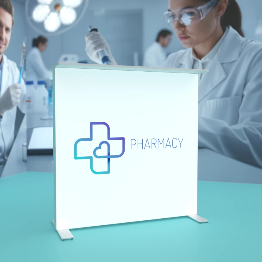 Ściany stoiska Multi Pharmacy Led drukowane są w technologii sublimacji, co zapewnia intensywne barwy i precyzyjne odwzorowanie detali. Materiał zachowuje swoje właściwości nawet po wielokrotnym praniu, dzięki czemu grafiki można wykorzystywać wielokrotnie bez utraty jakości. Twoje logo pozostaje czytelne i estetyczne przy każdym użyciu.